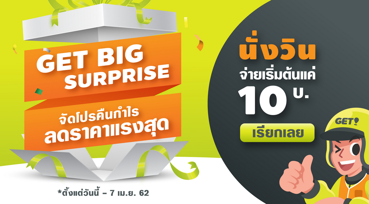 เพื่อรองรับความต้องการที่เพิ่มขึ้น “เก็ท” พร้อมแนะนำโปรโมชั่นใหม่ๆ สำหรับเดือนเมษายนนี้ด้วย สำหรับ GET WIN และ GET FOOD ค่าบริการเริ่มต้นเพียง 10 บาท เท่านั้น