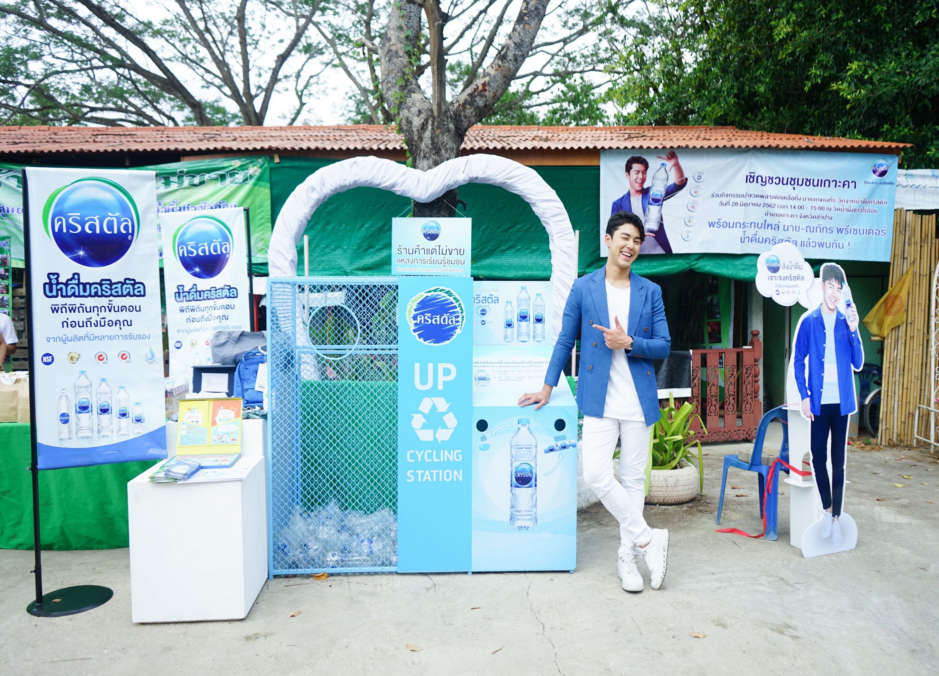 ด้าน นาย-ณภัทร เสียงสมบุญ พรีเซ็นเตอร์น้ำดื่มคริสตัล ได้นำทีมนักเรียนจากโรงเรียนเกาะคาวิทยาคมเยี่ยมชมสายการผลิตน้ำดื่มคริสตัลที่ได้มาตรฐานสากล ต่อด้วยการทำกิจกรรมให้ความรู้เกี่ยวกับการรีไซเคิลที่วัดน้ำผึ้งชาวไร่อ้อย พร้อมส่งมอบสถานีรักษ์โลกของน้ำดื่มคริสตัล เพื่อใช้ในโครงการธนาคารศูนย์บาทฯ กล่าวว่า “น้ำดื่มคริสตัลให้ความสำคัญกับคุณภาพน้ำดื่มที่พิถีพิถันและเป็นมิตรกับสิ่งแวดล้อมตลอดทั้งวงจรชีวิตของน้ำดื่มคริสตัล ตั้งแต่การผลิต การส่งมอบน้ำดื่ม ไปจนถึงการรีไซเคิลขยะพลาสติกจากขวดน้ำดื่ม วันนี้นอกจากจะพาน้องๆ เข้าชมกระบวนการผลิตน้ำดื่มคริสตัลแล้ว ยังเป็นตัวแทนส่งมอบสถานีรักษ์โลกของน้ำดื่มคริสตัล ให้กับโครงการธนาคารศูนย์บาท วัดน้ำผึ้งชาวไร่อ้อย ที่จะช่วยสร้างความรู้และความเข้าใจเกี่ยวกับกระบวนการจัดการบรรจุภัณฑ์พลาสติกที่ใช้แล้วมาแยกชิ้นส่วน ขวดพีอีที ฉลาก และฝา เพื่อนำไปรีไซเคิลเป็นผลิตภัณฑ์ต่างๆ ต่อไป ผมเชื่อว่าถ้าทุกคนร่วมมือกันคนละเล็กคนละน้อย โดยเริ่มต้นจากตัวเรา ก็จะสามารถสร้างความเปลี่ยนแปลงที่ยิ่งใหญ่ให้เกิดขึ้นกับสังคมและสิ่งแวดล้อมได้อย่างยั่งยืน”
