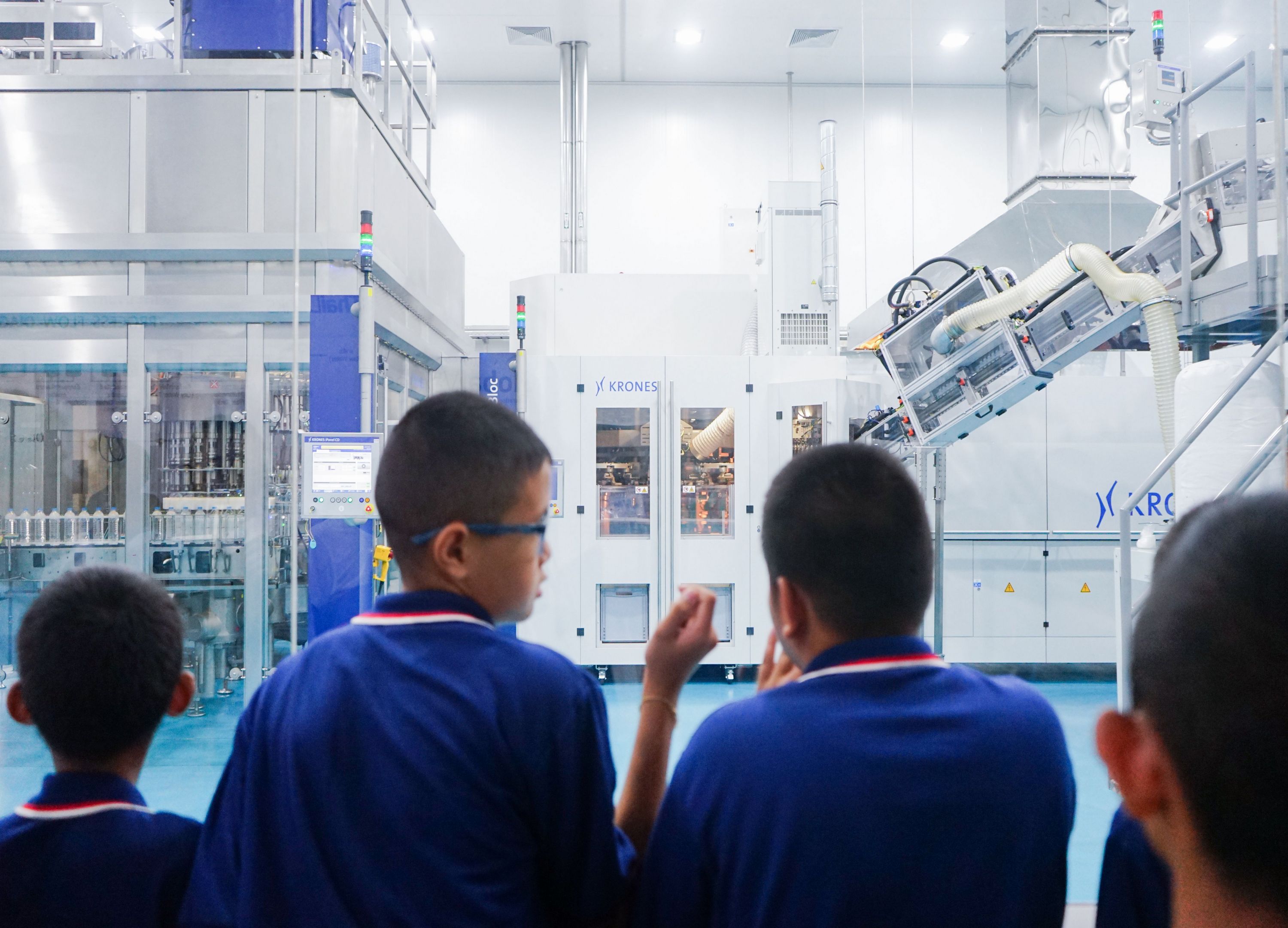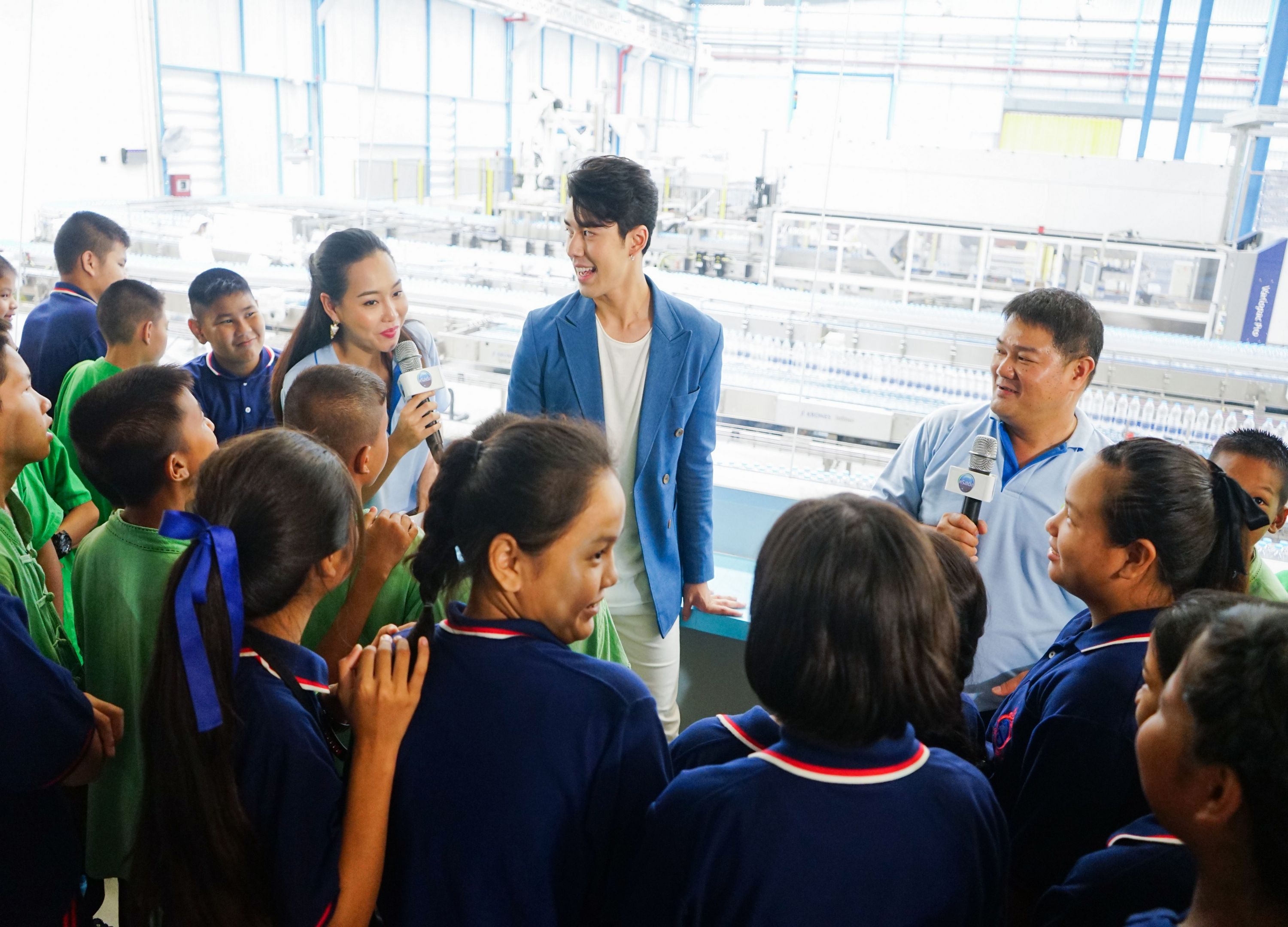 นาย ณภัทร นำขบวนนักเรียนจากโรงเรียนเกาะคาวิทยาคม จังหวัดลำปาง ชมเทคโนโลยีการผลิตรักษ์โลกและกระบวนการผลิตน้ำดื่มคริสตัล