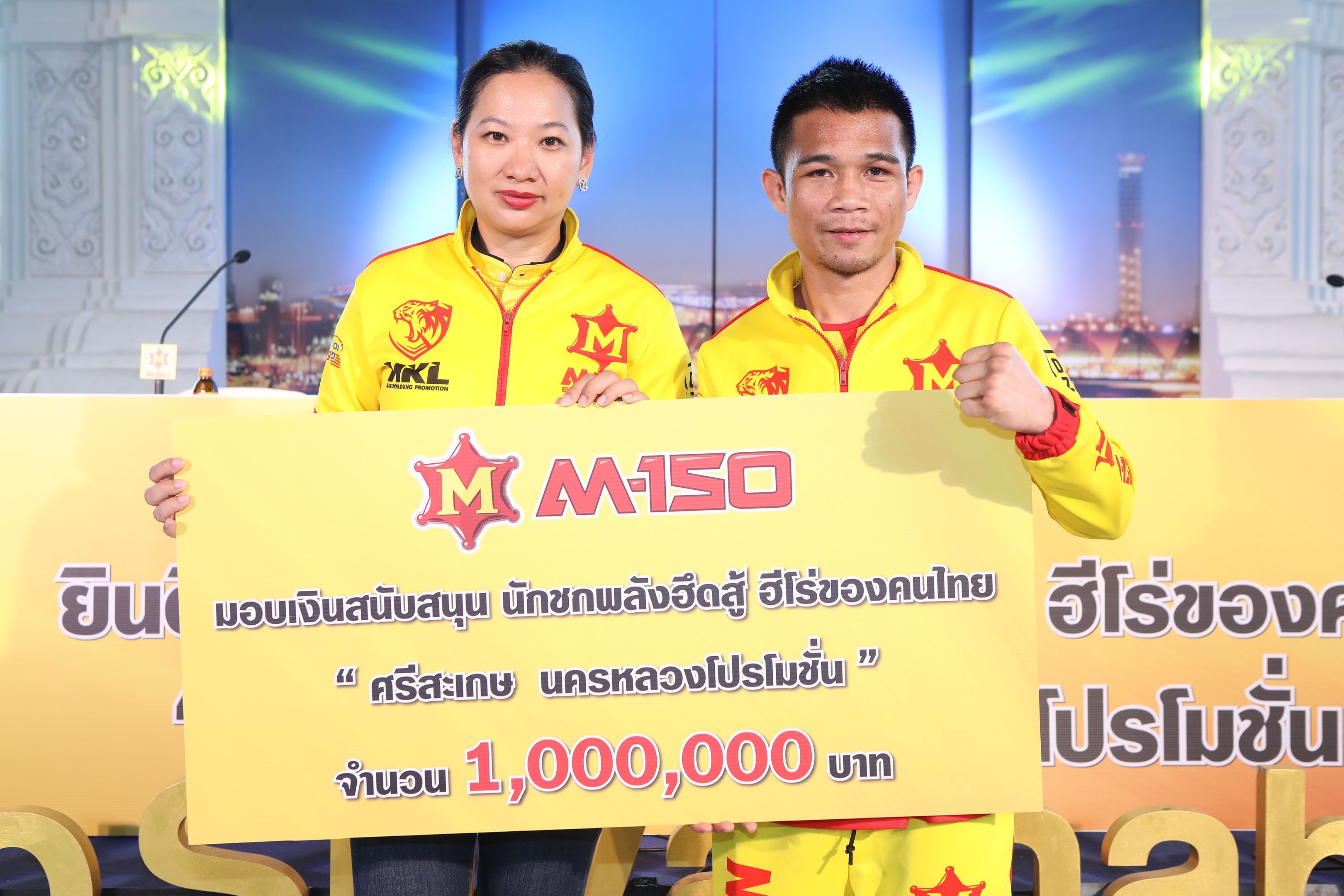 M-150 นำทีมต้อนรับฮีโร่นักชกไทย “ศรีสะเกษ นครหลวงโปรโมชั่น” หลังจบศึกป้องกันแชมป์โลกดับเบิลยูบีซี