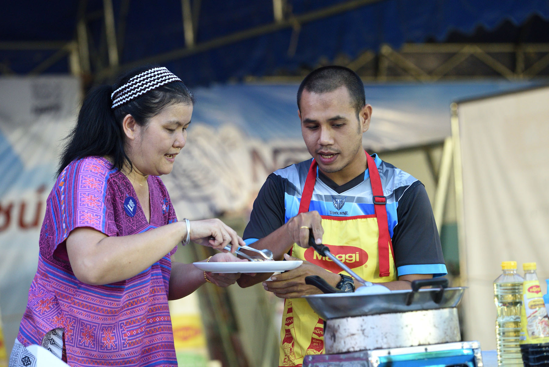 นายศักดิ์ดา วงศ์ละคร หรือ ครูอาร์ม ผู้ชนะการแข่งขันทำอาหารในกิจกรรมเนสท์เล่คาราวานครอบครัวแข็งแรง บอกว่า “เทคนิคในการทำผัดผักจนชนะเลิศในวันนี้คือ เลือกเจียวกระเทียมให้หอม นำผักที่สุกยากลงมาผัดก่อน เช่น แครอต บร็อกโคลี่ ผักกาด แล้วค่อยใส่ถั่วลันเตากับกะหล่ำปลีตามเพื่อให้รสชาติของผักออกมาได้ชัดเจน ใช้ไฟปานกลาง ไม่ปรุงรสชาติที่เค็มหรือหวานเกิน เพราะการกินอาหารที่รสจัดไม่ดีต่อสุขภาพ มาร่วมกิจกรรมแบบนี้เป็นครั้งแรก ได้ความรู้เพื่อนำไปปรับใช้ได้มาก อยากให้จัดบ่อยๆ เพราะมาสนุกกันได้ทั้งครอบครัว อย่างตอนนี้เป็นครูที่ทำหน้าที่ดูแลโครงการอาหารกลางวันให้นักเรียนในโรงเรียนด้วย กิจกรรมนี้ดีมากสามารถนำ 3 อ มาปรับใช้ได้แน่นอนอย่างเรื่องอาหารเราก็ลดน้ำมันลง เลือกอาหารที่หลากหลาย ส่งเสริมกิจกรรมออกกำลังกายให้นักเรียนมากขึ้น รวมทั้งการทำให้อารมณ์แจ่มใส”