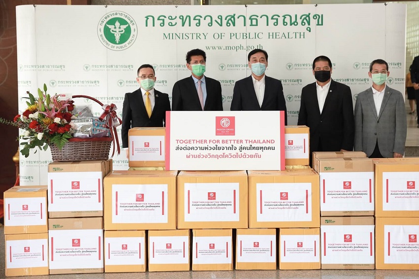 สำหรับสถานการณ์การระบาดของเชื้อไวรัส COVID-19 ในระลอกแรกที่ผ่านมา ซึ่งประเทศไทยต้องเผชิญกับภาวะขาดแคลนหน้ากากอนามัย ที่จะใช้ภายในประเทศนั้น MG ได้ประสานการสนับสนุนจาก บริษัท เอสเอไอซี มอเตอร์ คอร์ปอเรชั่น จำกัด ซึ่งเป็นบริษัทแม่ของ MG ในประเทศจีน ในการจัดหาหน้ากากอนามัยจำนวนกว่า 400,000 ชิ้น มาส่งมอบให้แก่ “กระทรวงมหาดไทย” จำนวน 300,000 ชิ้น เพื่อกระจายต่อไปให้แก่ประชาชนทั่วประเทศ และมอบให้กับมูลนิธิร่วมกตัญญู จำนวน 100,000 ชิ้น เพื่อช่วยเหลือประชาชนผู้ยากไร้ในระดับชุมชนครอบคลุมทั้งในพื้นที่กรุงเทพฯ และปริมณฑล สำหรับการระบาดในรอบล่าสุด MG ได้สนับสนุนการทำงานของ “กระทรวงสาธารณสุข” ด้วยการจัดหาอุปกรณ์ และของใช้จำเป็น อาทิ ชุด PPE อุปกรณ์ Face Shield เทอร์โมมิเตอร์ น้ำยาฆ่าเชื้อ หน้ากากผ้า เจลล้างมือ รวมทั้งน้ำดื่มเพื่อร่วมสนับสนุนภารกิจของโรงพยาบาล และบุคลากรทางแพทย์ ซึ่งเป็นด่านหน้าในการรับมือการแพร่ระบาดในครั้งนี้