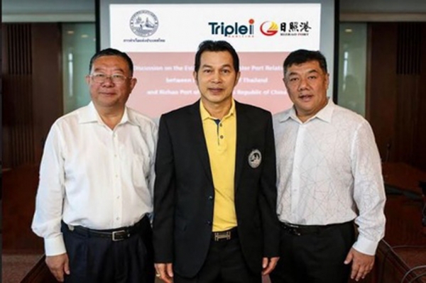 นายโกมล ศรีบางพลีน้อย (กลาง) ผู้อำนวยการท่าเรือกรุงเทพ ให้เกียรติต้อนรับ มร.หวัง หยงกัง (ซ้าย) รองกรรมการผู้จัดการใหญ่ บริษัท ริเซา พอร์ต กรุ๊ป จำกัด และ นายธนัท ตาตะยานนท์ (ขวา) กรรมการผู้จัดการ บริษัท ทริพเพิล ไอ มารีไทม์ เอเยนซีส์ จำกัด ตัวแทนสายการเดินเรือ ริเซา พอร์ต (ฮ่องกง) ชิปปิ้ง ไลน์ แต่เพียงผู้เดียวในประเทศไทย