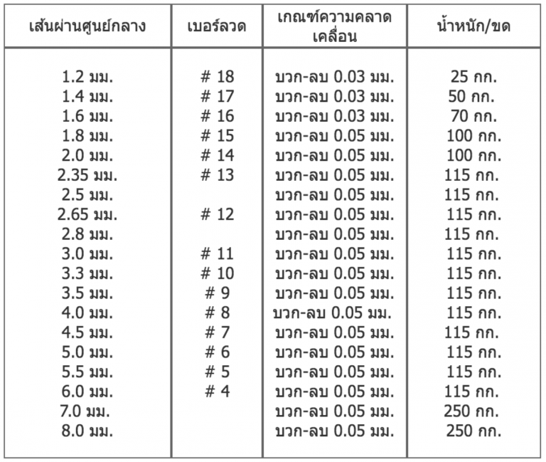 PACKING : มัดเป็นขด ( 25 – 250 กก.) หรือใส่ขาลวด ( WIRE STAND ) ได้ 600 – 800 กก.