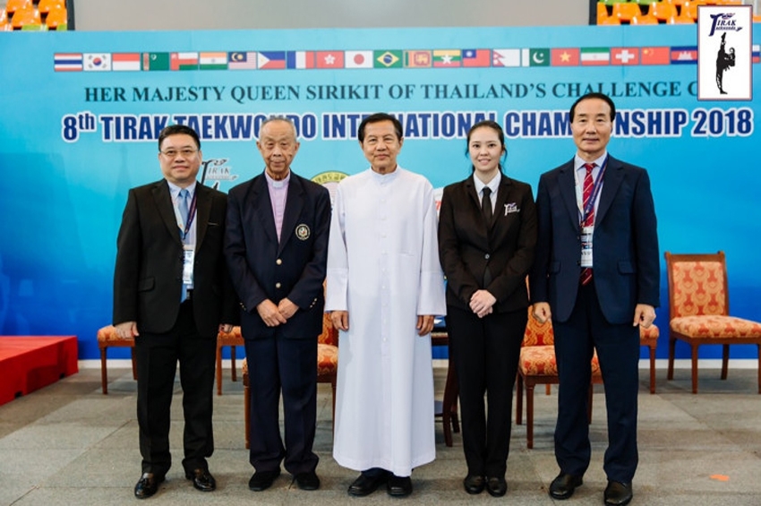 นายโอลิเวอร์ เย้ (ซ้ายสุด) กรรมการผู้จัดการ บริษัท ไวด์ เฟธ ฟู้ด จำกัด ผู้ผลิต ข้าวแผ่นอบกรอบตรา ไรซ์ บัดดี้ ร่วมสนับสนุนการแข่งขันเทควันโดนานาชาติ ชิงถ้วยพระราชทานสมเด็จพระนางเจ้าสิริกิติ์ พระบรมราชินีนาถ ในรัชกาลที่ 9 (8th Tirak Taekwondo International Championship 2018 for Her Majesty Queen Sirikit of Thailand's Challenge Cup)